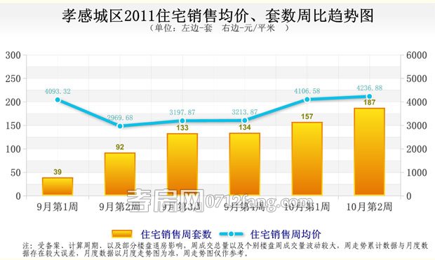 一周樓市走勢相關(guān)數(shù)據(jù)是以孝房網(wǎng)市場研究調(diào)研和統(tǒng)計(jì)處理得出,由于周價(jià)格受該周成交的樓盤及樓盤成交的具體房屋影響較大,故一周走勢能反映短期的變化狀態(tài),不能代表長期的走勢,供市民參考。