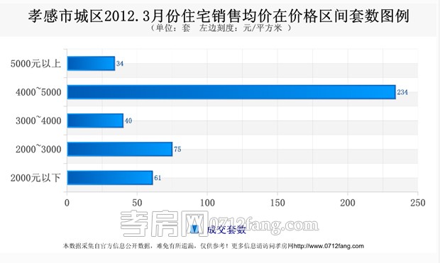 截止2012年3月31日全市住宅可售房源7756套;其中孝南城區(qū)可售2820套,開發(fā)東區(qū)可售3339套,開發(fā)西區(qū)可售627套,孝南鄉(xiāng)鎮(zhèn)可售970套。