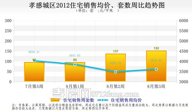 一周樓市走勢相關(guān)數(shù)據(jù)是以孝房網(wǎng)市場研究調(diào)研和統(tǒng)計處理得出,由于周價格受該周成交的樓盤及樓盤成交的具體房屋影響較大,故一周走勢能反映短期的變化狀態(tài),不能代表長期的走勢,供市民參考。