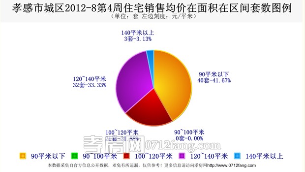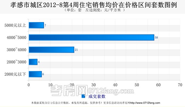2012年8月4周(8月20日--8月26日)據(jù)孝房網(wǎng)研究的統(tǒng)計數(shù)據(jù)顯示,孝感城區(qū)商品房共銷售108套,銷售面積10339.1平米,銷售總金額45031746元,銷售均價4355.48元/平米。其中住宅銷售為96套,銷售面積9840.33平米,銷售均價3977.77元/平米。非住宅銷售為12套,銷售均價11807.41元/平米。