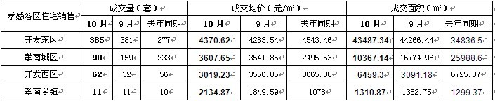 從各區(qū)成交量上看,開發(fā)東區(qū)環(huán)比上升且同比增加明顯;孝南城區(qū)剛好相反,環(huán)比下降且同比大幅下降;開發(fā)西區(qū)環(huán)比、同比略增,孝南鄉(xiāng)鎮(zhèn)基本保持無變化。