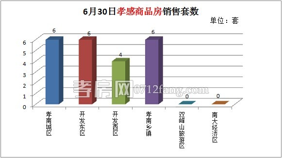 6月30日,孝南城區(qū)商品房銷售套數(shù)為6套,開發(fā)東區(qū)為6套,孝南鄉(xiāng)鎮(zhèn)為6套,開發(fā)西區(qū)為4。