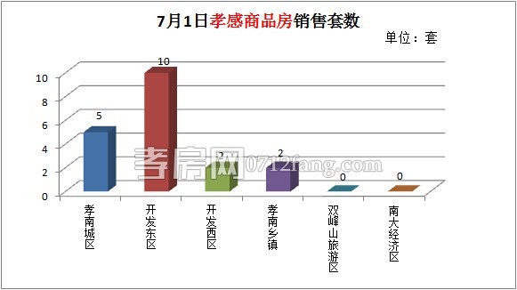 7月1日,孝南城區(qū)商品房銷(xiāo)售套數(shù)為5套,開(kāi)發(fā)東區(qū)為10套,孝南鄉(xiāng)鎮(zhèn)為2套,開(kāi)發(fā)西區(qū)為2套。
