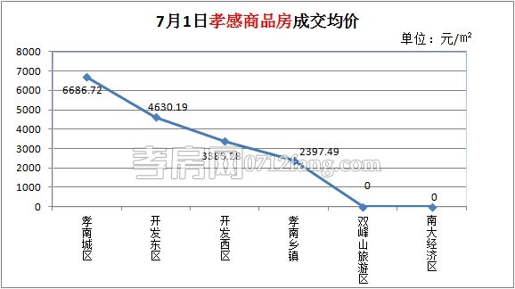 7月1日,孝南城區(qū)商品房成交均價(jià)為6686.72元/㎡,開(kāi)發(fā)東區(qū)為4630.19元/㎡,孝南鄉(xiāng)鎮(zhèn)為2397.49元/㎡,開(kāi)發(fā)西區(qū)為3383.28元/㎡。