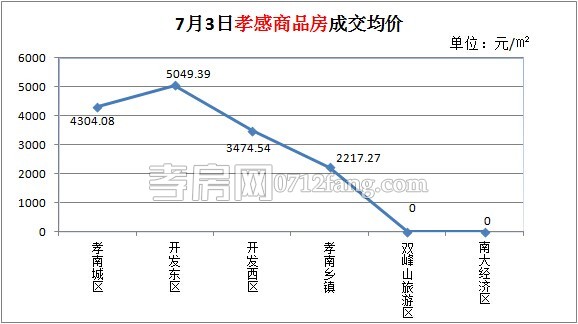 7月3日,孝南城區(qū)商品房成交均價為4304.08元/㎡,開發(fā)東區(qū)為5049.39元/㎡,孝南鄉(xiāng)鎮(zhèn)為2217.27元/㎡,開發(fā)西區(qū)為3474.54元/㎡。