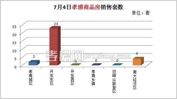 7月4日,孝南城區(qū)商品房銷售套數(shù)為2套,開發(fā)東區(qū)為23套,南大經(jīng)濟(jì)區(qū)為4套。