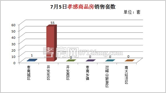 7月5日,孝南城區(qū)商品房銷(xiāo)售套數(shù)為1套,開(kāi)發(fā)東區(qū)為55套。