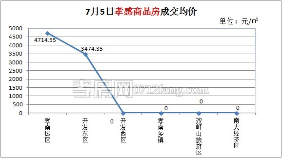7月5日,孝南城區(qū)商品房成交均價(jià)為4714.55元/㎡,開(kāi)發(fā)東區(qū)為3474.35元/㎡。