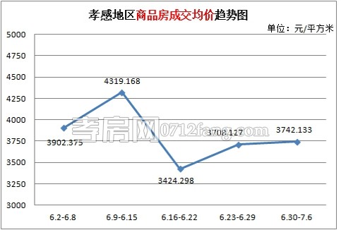 在上周,孝感地區(qū)商品房成交均價為3742.133元/平方米。事實上,上周和上上周的均價比較接近,意味著在總金額比上總面積的比例比較接近,上周的走勢實際上是較為平穩(wěn)的。