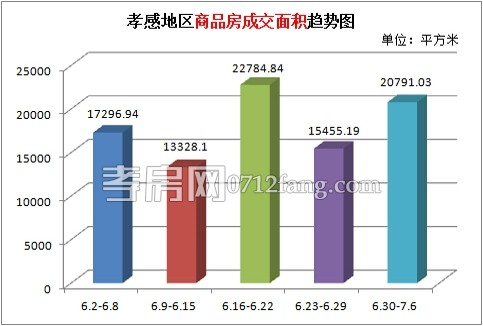 上周,孝感地區(qū)商品房總成交面積為20791.03平方米,是6月2日至7月6日以來,成交面積排名二的時間段。另外,也較上上周上漲34.5%。