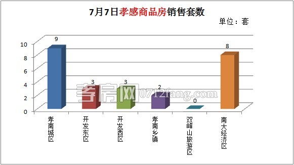 7月7日,孝南城區(qū)商品房銷售套數(shù)為9套,開發(fā)東區(qū)為3套,開發(fā)西區(qū)為3套,孝南鄉(xiāng)鎮(zhèn)為2套,南大經濟區(qū)為8套。