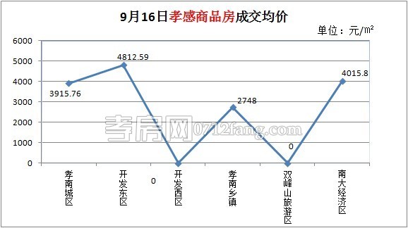 9月16日,全市的成交均價(jià)為4377.68元/㎡。其中,孝南城區(qū)成交均價(jià)為3915.76元/㎡,開發(fā)東區(qū)為4812.59元/㎡,南大經(jīng)濟(jì)區(qū)為4015.8元/㎡,孝南鄉(xiāng)鎮(zhèn)為2748元/㎡。
