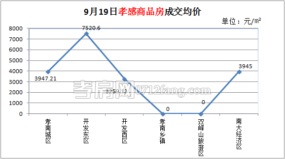 9月19日,全市的成交均價為5432.92元/㎡。其中,孝南城區(qū)成交均價為3947.21元/㎡,開發(fā)東區(qū)為7520.6元/㎡,南大經(jīng)濟區(qū)為3945元/㎡,開發(fā)西區(qū)為3259.13元/㎡。