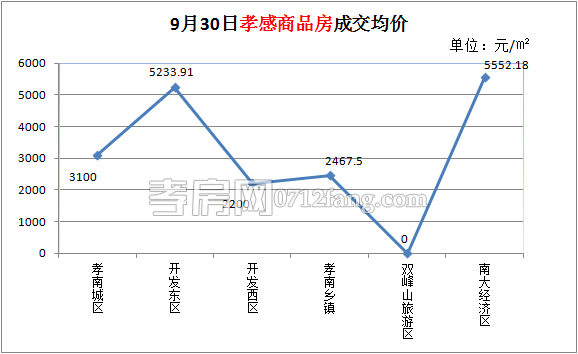 9月30日,全市的成交均價(jià)為5169.88元/㎡。其中,孝南城區(qū)為3100.00元/㎡,開發(fā)東區(qū)為5233.91元/㎡,開發(fā)西區(qū)為2200.00元/㎡,孝南鄉(xiāng)鎮(zhèn)為2467.50元/㎡,南大經(jīng)濟(jì)區(qū)為5552.18元/㎡。