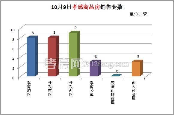 10月9日,全市的銷售套數(shù)為31套。其中,開發(fā)西區(qū)為9套,開發(fā)東區(qū)為8套,孝南城區(qū)為8套,南大經(jīng)濟(jì)區(qū)為3套,孝南鄉(xiāng)鎮(zhèn)為3套。