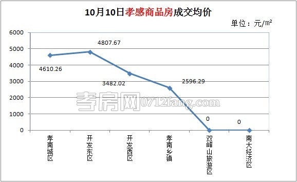 10月10日,全市的成交均價為4635. 65元/㎡。其中開發(fā)西區(qū)為3482.02元/㎡,開發(fā)東區(qū)為4807.68元/㎡,孝南城區(qū)為4610.65元/㎡,孝南鄉(xiāng)鎮(zhèn)為2596.29元/㎡。