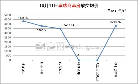 10月11日,全市的成交均價(jià)為3945.04元/㎡。其中,孝南城區(qū)為4326.81元/㎡,開(kāi)發(fā)西區(qū)為3790.30元/㎡,南大經(jīng)濟(jì)區(qū)為3793.26元/㎡,開(kāi)發(fā)東區(qū)為3493.74元/㎡。