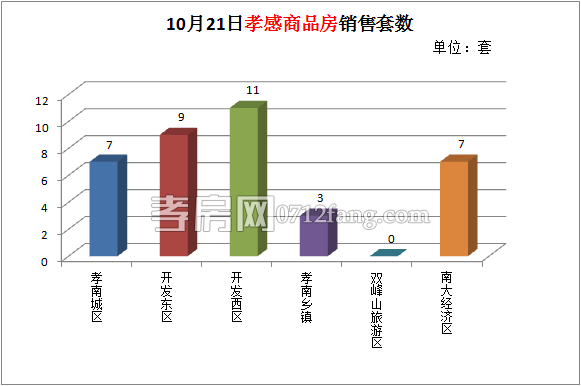 10月21日,全市的銷售套數(shù)為37套。其中,孝南城區(qū)為7套,南大經(jīng)濟(jì)區(qū)為7套,開發(fā)東區(qū)為9套,開發(fā)西區(qū)為11套,孝南鄉(xiāng)鎮(zhèn)為3套。