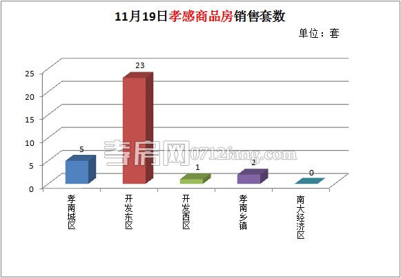11月19日,全市的銷售套數(shù)為31套。其中孝南城區(qū)為5套,開發(fā)東區(qū)為23套,開發(fā)西區(qū)為1套,孝南鄉(xiāng)鎮(zhèn)為2套。