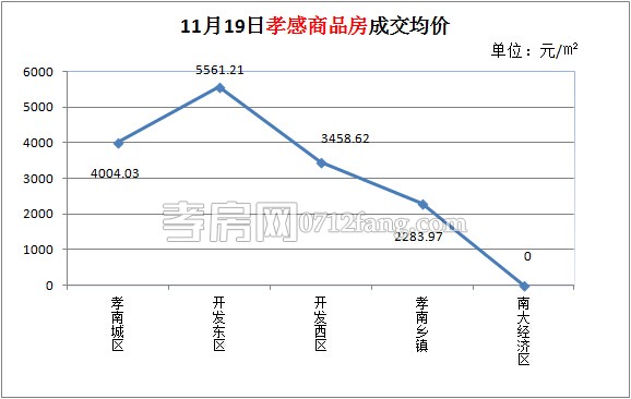 11月19日,全市的成交均價(jià)為5028.14元/㎡。其中開孝南城區(qū)為4004.03元/㎡,開發(fā)東區(qū)為5561.21元/㎡,開發(fā)西區(qū)為3458.62元/㎡,孝南鄉(xiāng)鎮(zhèn)為2283.97元/㎡。