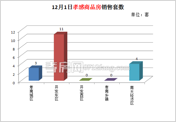 12月1日,全市的銷售套數(shù)為18套。其中孝南城區(qū)為3套,開發(fā)東區(qū)為11套,南大經(jīng)濟區(qū)為4套。