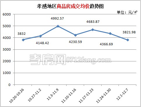 從2014年12月1日到2014年12月7日,孝感區(qū)域商品房成交均價(jià)3821.98元/平方米??v觀近期周,上周商品房成交均價(jià)創(chuàng)出了近期新低,對(duì)比10月下旬成交均價(jià)低一周的3832元/平方米,上周商品房成交均價(jià)下降0.3%。樓市進(jìn)入12月,各大樓盤為了沖刺年底銷量,紛紛推出優(yōu)惠政策,這也是導(dǎo)致上周商品房成交均價(jià)回落的因素之一。