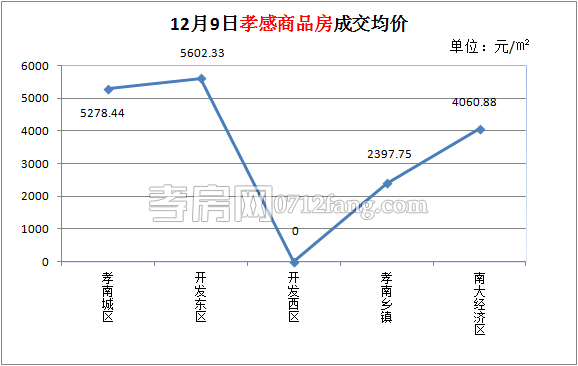 12月9日,全市的成交均價為4848.60元/㎡。其中開孝南城區(qū)為5278.44元/㎡,開發(fā)東區(qū)為5602.33元/㎡,孝南鄉(xiāng)鎮(zhèn)為2397.75元/㎡,南大經(jīng)濟(jì)區(qū)為4060.88元/㎡。