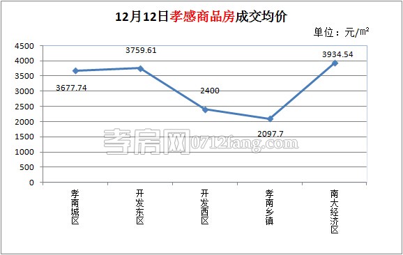 12月12日,全市的成交均價(jià)為3416.25元/㎡。其中開孝南城區(qū)為3677.74元/㎡,開發(fā)東區(qū)為3759.61元/㎡,開發(fā)西區(qū)為2400.00元/㎡,孝南鄉(xiāng)鎮(zhèn)為2097.70元/㎡,南大經(jīng)濟(jì)區(qū)為3934.54元/㎡。