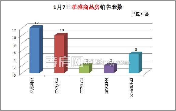 1月7日,全市的銷售套數(shù)為31套。其中孝南城區(qū)為12套,開發(fā)東區(qū)為10套,開發(fā)西區(qū)為2套,孝南鄉(xiāng)鎮(zhèn)為2套,南大經(jīng)濟區(qū)為5套。