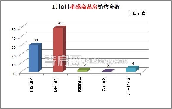 1月8日,全市的銷售套數(shù)為85套。其中孝南城區(qū)為30套,開發(fā)東區(qū)為49套,開發(fā)西區(qū)為2套,南大經(jīng)濟(jì)區(qū)為4套。