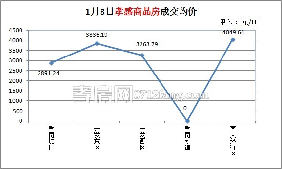1月8日,全市的銷售面積為8522.33㎡。其中孝南城區(qū)為2388.77㎡,開發(fā)東區(qū)為5510.81㎡,開發(fā)西區(qū)為222.22㎡,南大經(jīng)濟(jì)區(qū)為400.53㎡。