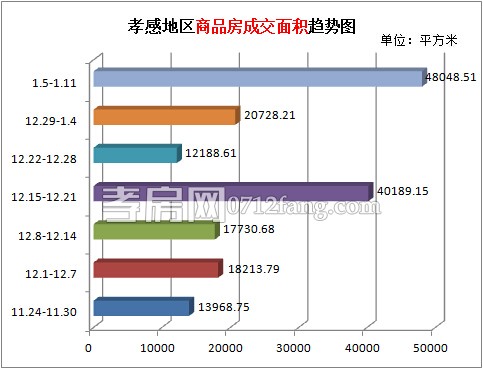 從2015年1月5日到2015年1月11日,孝感區(qū)域商品房成交面積為48048.51平方米。受成交套數(shù)的影響,上周商品房成交面積增長明顯。對比前一周,上周商品房成交面積約是前一周的2.3倍,上周商品房成交面積增長明顯。