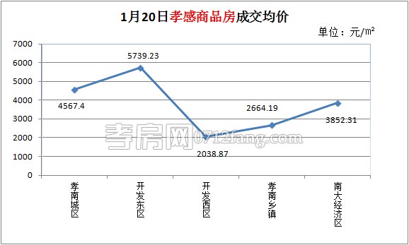 1月20日,全市的成交均價(jià)為3946.17元/㎡。其中開孝南城區(qū)為4567.40元/㎡,開發(fā)東區(qū)為5739.23元/㎡,開發(fā)西區(qū)為2038.87元/㎡,孝南鄉(xiāng)鎮(zhèn)為2664.19元/㎡,南大經(jīng)濟(jì)區(qū)為3852.31元/㎡。