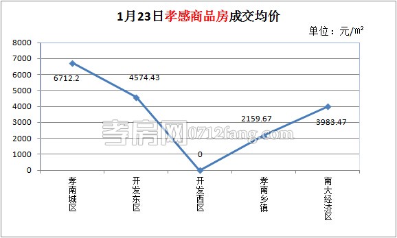 1月23日,全市的成交均價為4070.39元/㎡。其中開孝南城區(qū)為6712.20元/㎡,開發(fā)東區(qū)為4574.43元/㎡,孝南鄉(xiāng)鎮(zhèn)為2159.67元/㎡,南大經(jīng)濟(jì)區(qū)為3983.47元/㎡。