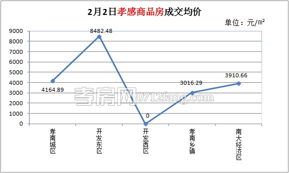 2月2日,全市的成交均價(jià)為4112.62元/㎡。其中開孝南城區(qū)為4164.89元/㎡,開發(fā)東區(qū)為8482.48元/㎡,孝南鄉(xiāng)鎮(zhèn)為3016.29元/㎡,南大經(jīng)濟(jì)區(qū)為3910.66元/㎡。
