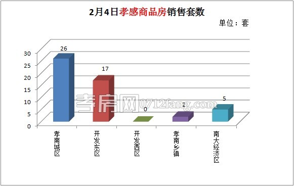2月4日,全市的銷售套數(shù)為50套。其中孝南城區(qū)為27套,開發(fā)東區(qū)為27套,開發(fā)西區(qū)為1套,孝南鄉(xiāng)鎮(zhèn)為2套,南大經(jīng)濟(jì)區(qū)為10套。