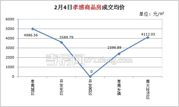 2月4日,全市的成交均價為3593.55元/㎡。其中開孝南城區(qū)為4986.36元/㎡,開發(fā)東區(qū)為3589.79元/㎡,孝南鄉(xiāng)鎮(zhèn)為2396.89元/㎡,南大經(jīng)濟(jì)區(qū)為4112.03元/㎡。