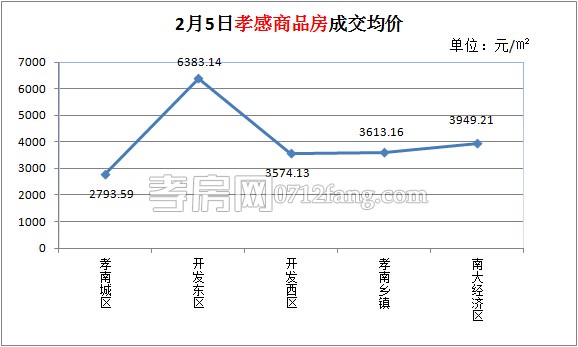 2月5日,全市的成交均價為3366.34元/㎡。其中開孝南城區(qū)為2793.59元/㎡,開發(fā)東區(qū)為6383.14元/㎡,開發(fā)西區(qū)為3574.13元/㎡,孝南鄉(xiāng)鎮(zhèn)為3613.16元/㎡,南大經(jīng)濟區(qū)為3949.21元/㎡。