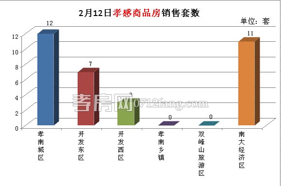 2月12日,全市的銷售套數(shù)為33套。其中孝南城區(qū)為12套,開發(fā)東區(qū)為7套,開發(fā)西區(qū)為3套,南大經(jīng)濟區(qū)為11套。
