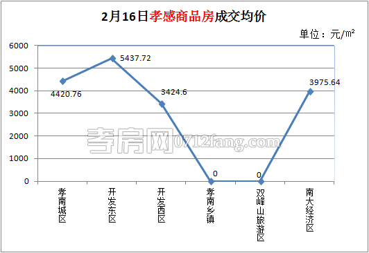 2月16日,全市的成交均價(jià)為4619.72元/㎡。其中孝南城區(qū)為4420.76元/㎡,開(kāi)發(fā)東區(qū)為5437.72元/㎡,開(kāi)發(fā)西區(qū)為3424.60元/㎡,南大經(jīng)濟(jì)區(qū)為3975.64元/㎡。