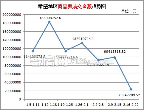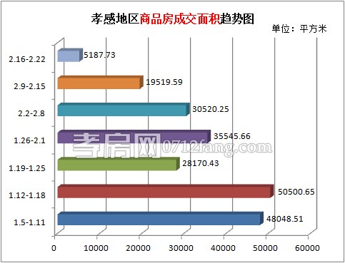 從2015年2月16日到2015年2月22日,孝感區(qū)域商品房成交面積為5187.73平方米。對(duì)比前一周上周商品房成交面積約大降14300平方米,新年已至,孝感樓市卻從未像上周這樣,讓人對(duì)這個(gè)樓市的春天充滿疑問。