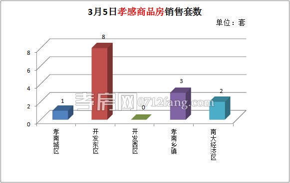 3月5日,全市的銷售套數(shù)為14套。其中孝南城區(qū)為1套,開發(fā)東區(qū)為8套,孝南鄉(xiāng)鎮(zhèn)為3套,南大經(jīng)濟(jì)區(qū)為2套。
