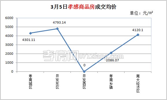 3月5日,全市的成交均價(jià)為4053.19元/㎡。其中開孝南城區(qū)為4301.11元/㎡,開發(fā)東區(qū)為4793.14元/㎡,孝南鄉(xiāng)鎮(zhèn)為2086.07元/㎡,南大經(jīng)濟(jì)區(qū)為4120.10元/㎡。