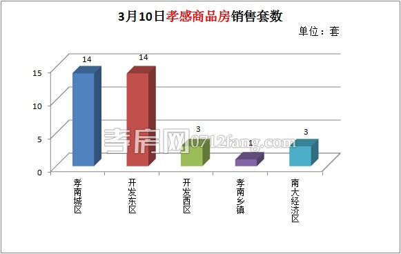 3月10日,全市的銷售套數(shù)為35套。其中孝南城區(qū)為14套,開發(fā)東區(qū)為14套,開發(fā)西區(qū)為3套,孝南鄉(xiāng)鎮(zhèn)為1套,南大經(jīng)濟區(qū)為3套。
