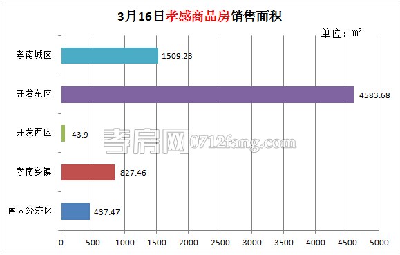 3月16日,全市的銷售面積為7401.74㎡。其中孝南城區(qū)為1509.23㎡,開(kāi)發(fā)東區(qū)為4583.68㎡,開(kāi)發(fā)西區(qū)為43.90㎡,孝南鄉(xiāng)鎮(zhèn)為827.46㎡,南大經(jīng)濟(jì)區(qū)為437.47㎡。