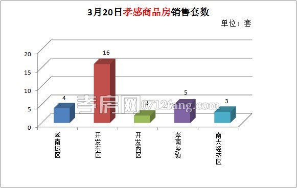 3月20日,全市的銷售套數(shù)為30套。其中孝南城區(qū)為4套,開發(fā)東區(qū)為16套,開發(fā)西區(qū)為2套,孝南鄉(xiāng)鎮(zhèn)為5套,南大經(jīng)濟(jì)區(qū)為3套。