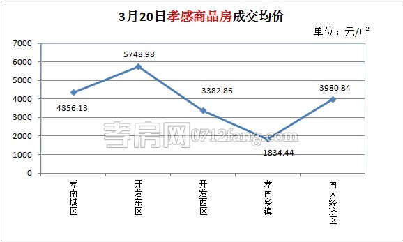 3月20日,全市的成交均價(jià)為4410.71元/㎡。其中開孝南城區(qū)為4356.13元/㎡,開發(fā)東區(qū)為5748.98元/㎡,開發(fā)西區(qū)為3382.86元/㎡,孝南鄉(xiāng)鎮(zhèn)為,1834.44元/㎡,南大經(jīng)濟(jì)區(qū)為3980.84元/㎡。