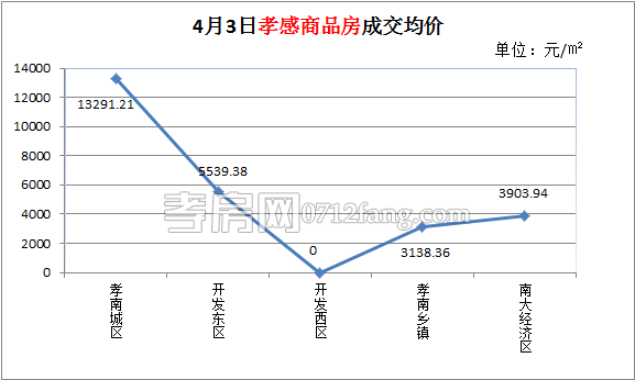4月3日,全市的成交均價為6401.85元/㎡。其中開孝南城區(qū)為13291.21元/㎡,開發(fā)東區(qū)為5539.38元/㎡,孝南鄉(xiāng)鎮(zhèn)為3138.36元/㎡,南大經(jīng)濟(jì)區(qū)為3903.94元/㎡。