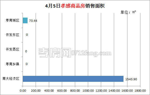 4月5日,全市的銷售面積1617.34㎡。其中孝南城區(qū)為73.44㎡,南大經濟區(qū)為1543.90㎡。