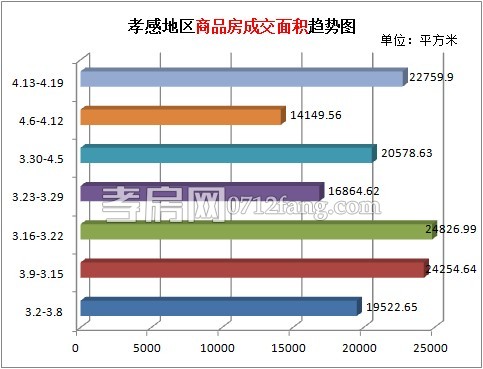 據(jù)孝房網(wǎng)數(shù)據(jù)研究顯示,從2015年4月13日到2015年4月19日,孝感地區(qū)銷售總交易記錄192套,面積為22759.9平方米,金額為99715454元,均價(jià)為4381.19元/平方米。